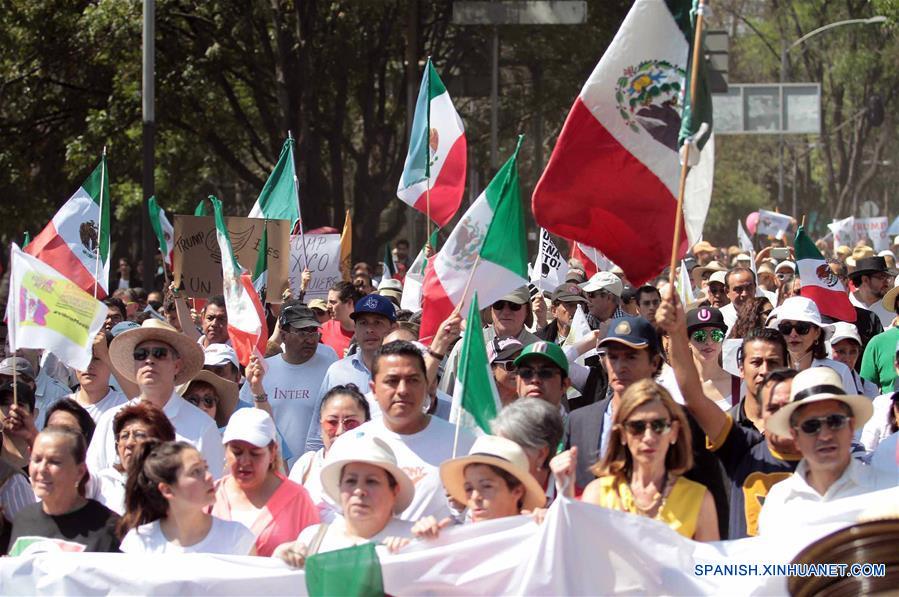 MEXICO, 12 feb (Xinhua) -- Miles de mexicanos marcharon hoy domingo por Paseo de la Reforma, la avenida más emblemática de la Ciudad de México, para protestar contra las políticas migratorias y comerciales del presidente de Estados Unidos, Donald Trump.