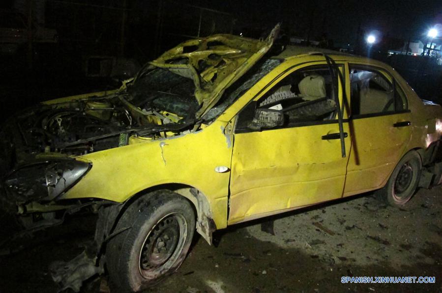 BAGDAD, febrero 15, 2017 (Xinhua) -- Vista de un vehículo afectado en un atentado suicida con coche bomba en el este de Bagdad, capital de Irak, el 15 de febrero de 2017. Al menos nueve personas murieron y 30 más resultaron heridas el miércoles en un atentado suicida con coche bomba en un bastión chiita en el este de Bagdad, la capital iraquí, informó un oficial de la policía. (Xinhua/Khalil Dawood)
