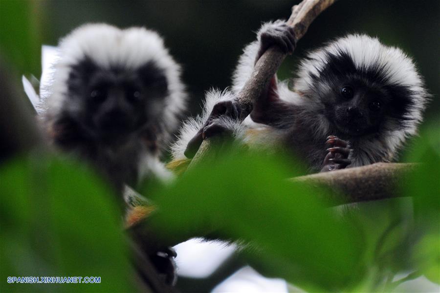 SINGAPUR, febrero 15, 2017 (Xinhua) -- Dos monos tití de cabeza blanca exploran sus alrededores en el Zoológico de Singapur, capital de Singapur, el 15 de febrero de 2017. Los animales bajo el cuidado de las Reservas de Vida Silvestre de Singapur (WRS, por sus siglas en inglés), dieron a luz a más de 600 cachorros en 2016. (Xinhua/Then Chih Wey)
