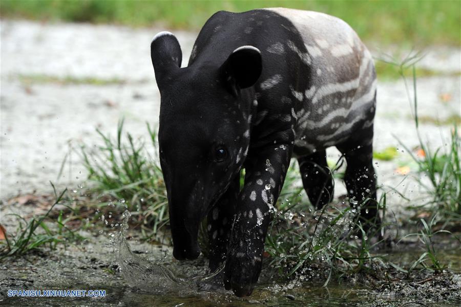 SINGAPUR, febrero 15, 2017 (Xinhua) -- Un cachorro de tapir malayo pasea alrededor de su recinto en el Zoológico de Singapur, capital de Singapur, el 15 de febrero de 2017. Los animales bajo el cuidado de las Reservas de Vida Silvestre de Singapur (WRS, por sus siglas en inglés), dieron a luz a más de 600 cachorros en 2016. (Xinhua/Then Chih Wey)