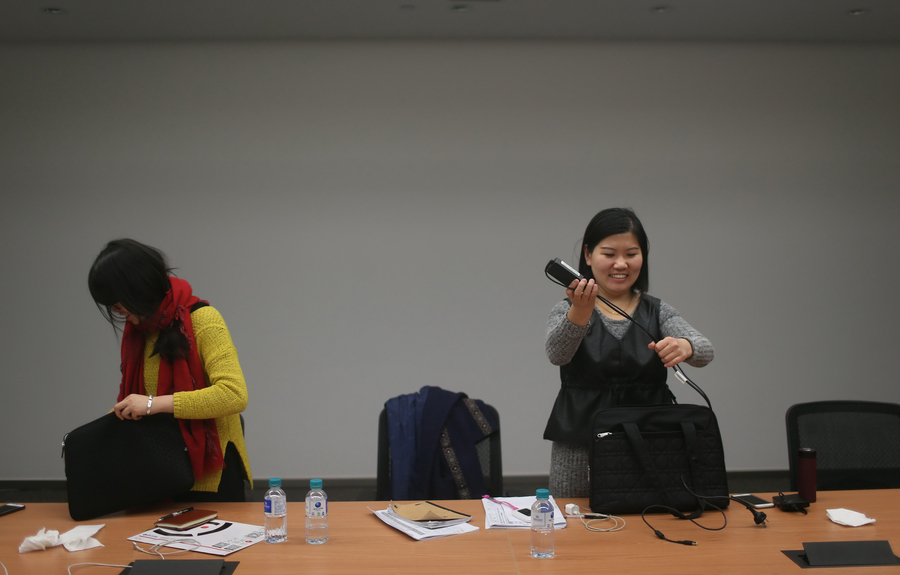 Jiang guarda sus cosas antes de regresar a casa, el 10 de febrero de 2017. [Foto / VCG]