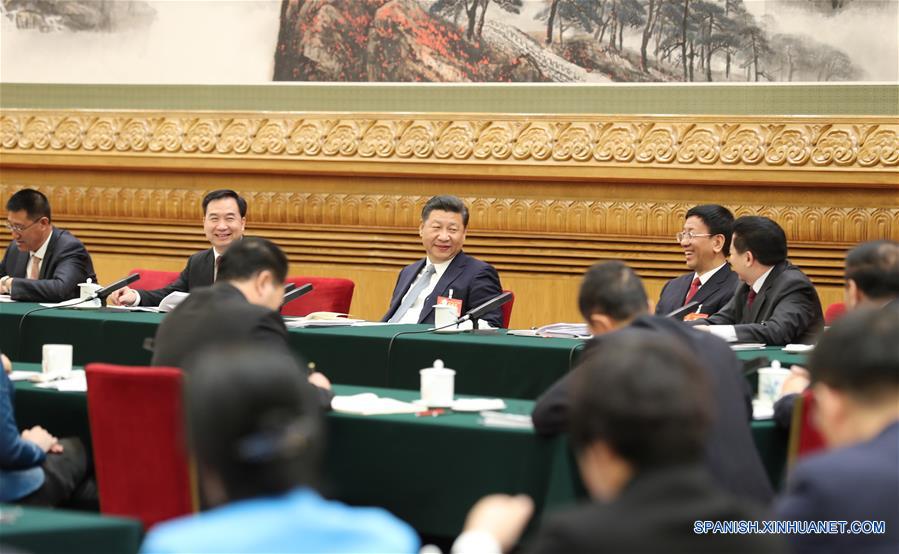 El presidente de China, Xi Jinping,también secretario general del Comité Central del Partido Comunista de China y presidente de la Comisión Militar Central, durante un debate de un panel de legisladores nacionales procedentes de Liaoning celebrado en la sesión anual de la Asamblea Popular Nacional (APN),capital de China, 7 de marzo de 2017.(Xinhua/Ding Lin)