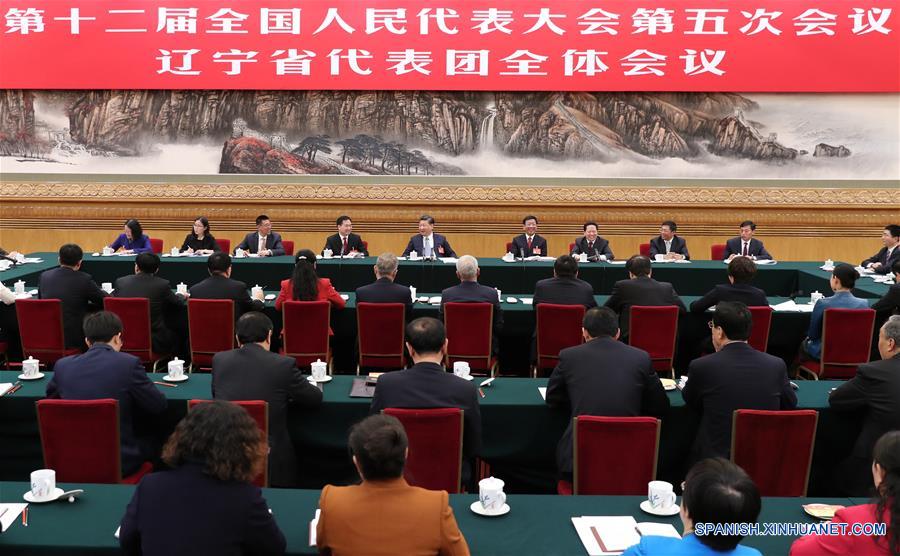 El presidente de China, Xi Jinping,también secretario general del Comité Central del Partido Comunista de China y presidente de la Comisión Militar Central, durante un debate de un panel de legisladores nacionales procedentes de Liaoning celebrado en la sesión anual de la Asamblea Popular Nacional (APN),capital de China, 7 de marzo de 2017.(Xinhua/Xie Huanchi)
