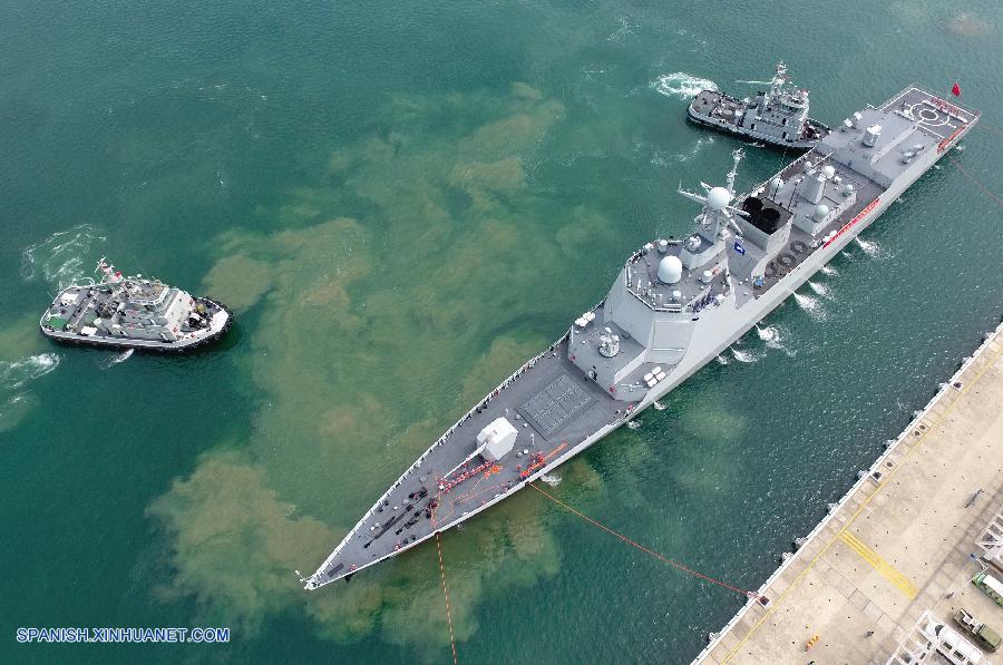 HAINAN, marzo 7, 2017 (Xinhua) -- El destructor de misiles Changsha regresa a un puerto luego de un ejercicio en alta mar, en la ciudad de Sanya, provincia de Hainan, en el sur de China, el 7 de marzo de 2017. Una flota naval de China regresó el martes a un puerto de Sanya, en la provincia insular de Hainan, después de un ejercicio en alta mar. La flota, compuesta por los destructores Changsha y Haikou y el buque de aprovisionamiento Luomahu, navegó más de 8,000 millas náuticas desde el 10 de febrero, pasando por el Mar Meridional de China, el este del Océano Indico, el oeste del Océano Pacífico y el Mar Oriental de China. (Xinhua/Zeng Tao)