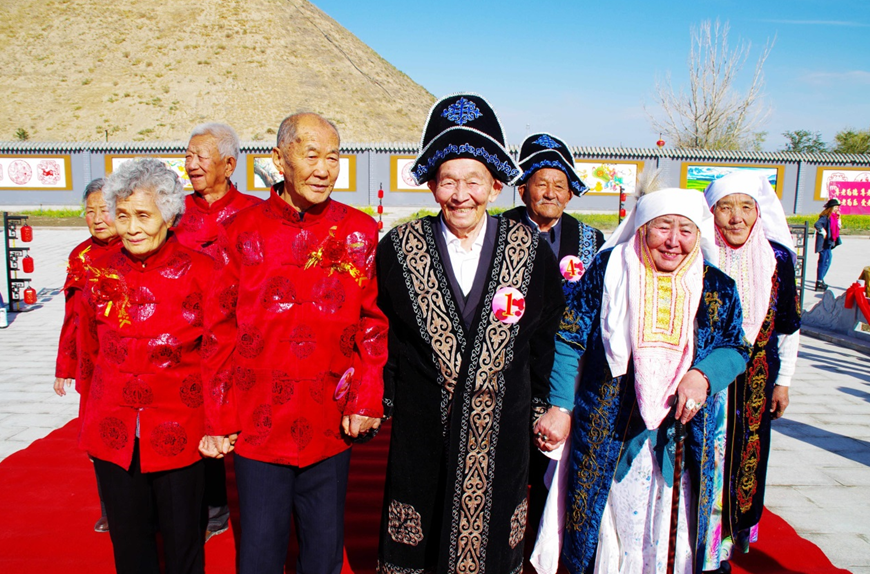 El 9 de octubre del 2016, en una actividad celebrada dentro del Festival del Doble Nueve (Festival de los Ancianos) en Xinjiang, 12 parejas de las etnias Han y Kazajo, celebraron juntos más de 50 a?os de fecundo matrimonio.