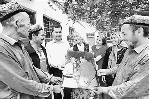 Los descendientes del legendario campesino Kurban muestran la foto de uno de sus encuentros con el presidente Mao. (Foto:Dai Lan y Luo Jina)