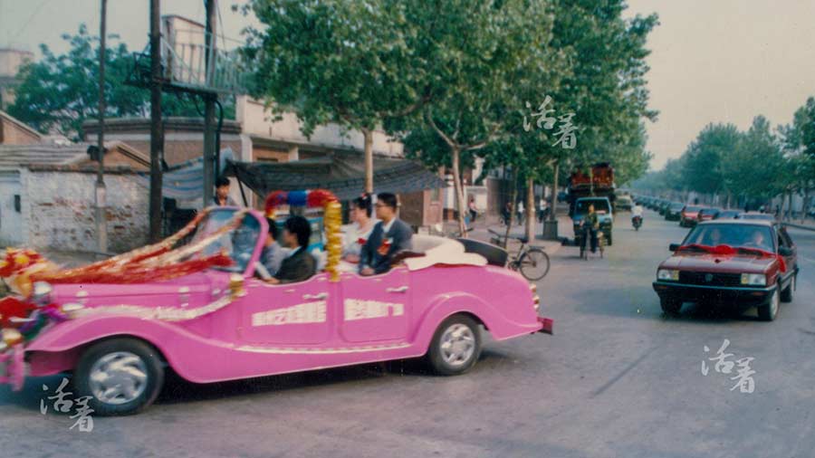 La boda de la hija de un compa?ero de Meng, Zhao Yingjie, en mayo de 2000. La pareja viajó en un vehículo que fue ofrecido gratis por un estudio de fotografía. La competencia entre los estudios comenzó a ponerse difícil. [Foto / qq.com]