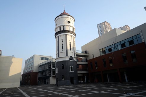 Un campanario que recuerda el que tenía la vieja estación de trenes de Ji'nan se ha construido en una de las calles de la ciudad. (Foto: CFP)