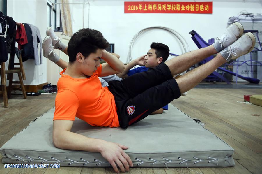 SHANGHAI, marzo 15, 2017 (Xinhua) -- Imagen del 13 de marzo de 2017 de estudiantes ejercitándose en la Escuela Circense de Shanghai, en Shanghai, en el este de China. La Escuela Circense de Shanghai, construida en 1989, es una de las escuelas más antiguas de entrenamiento de acrobacia en China y cuenta con 45 estudiantes de Xinjiang, que se graduarán en julio y se presentarán en sus ciudades natales. (Xinhua/Ding Ting)