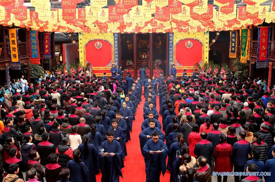 SHANGHAI, marzo 18, 2017 (Xinhua) -- Una ceremonia se lleva a cabo en el templo Chenghuang (El Templo de la Ciudad de Shanghai) deseando la prosperidad de la ciudad, en Shanghai, en el este de China, el 18 de marzo de 2017. (Xinhua/Liu Ying)