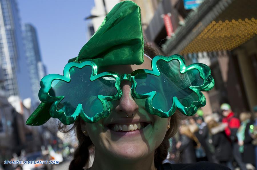 TORONTO, marzo 19, 2017 (Xinhua) -- Una mujer posa durante el Desfile del Día de San Patricio 2017 en Toronto, Canadá, el 19 de marzo de 2017. El evento anual tradicional comenzó el domingo y se espera que reúna a miles de personas para festejar la historia, cultura y herencia de Irlanda a través del entretenimiento. (Xinhua/Zou Zheng)