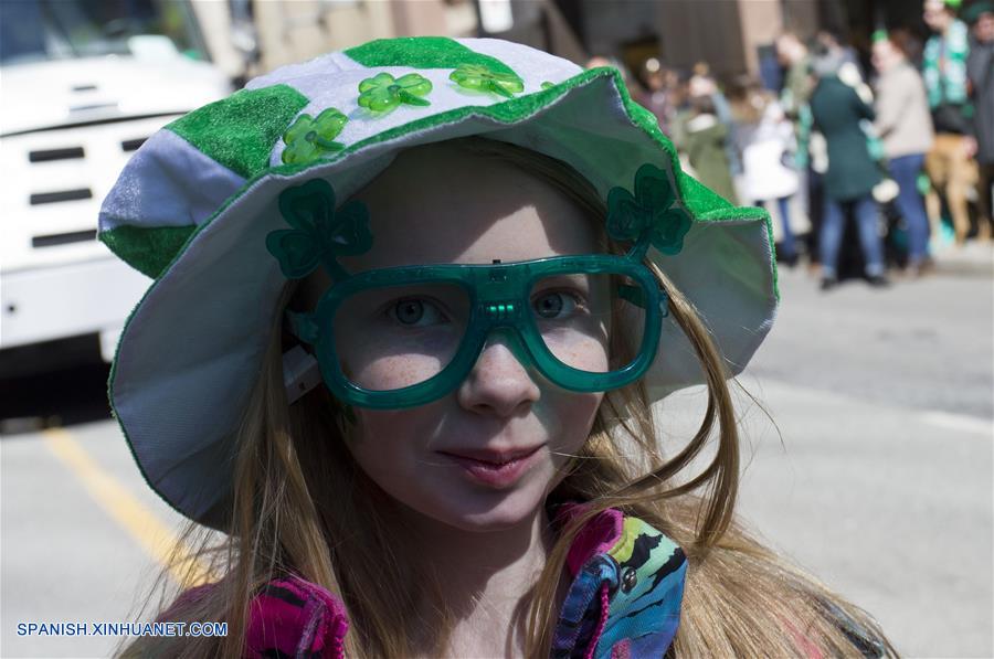 TORONTO, marzo 19, 2017 (Xinhua) -- Una mujer posa durante el Desfile del Día de San Patricio 2017 en Toronto, Canadá, el 19 de marzo de 2017. El evento anual tradicional comenzó el domingo y se espera que reúna a miles de personas para festejar la historia, cultura y herencia de Irlanda a través del entretenimiento. (Xinhua/Zou Zheng)