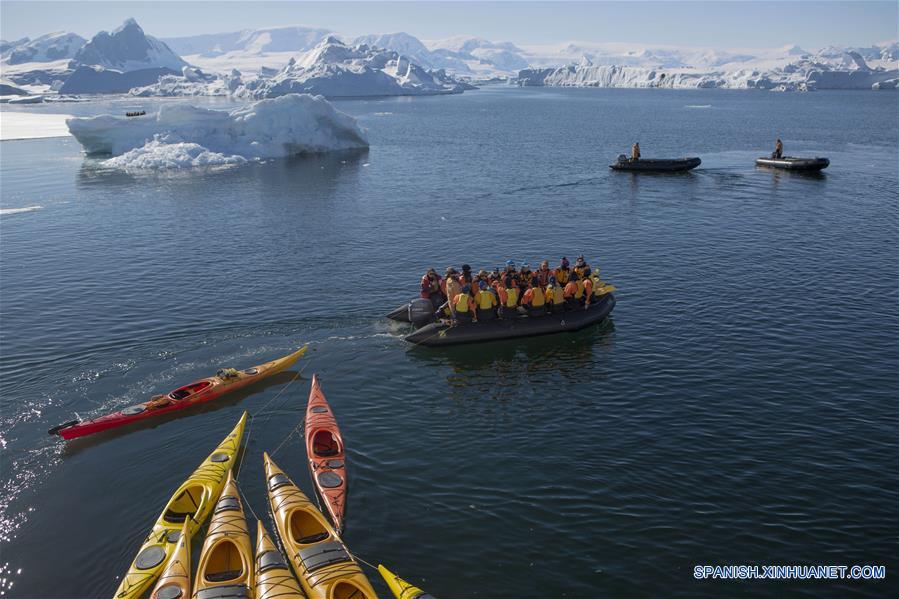 CRYSTAL SOUND, marzo 22, 2017 (Xinhua) -- Imagen del 20 de enero de 2017, de embarcaciones navegando en el mar en Crystal Sound, Antártida. De acuerdo con información de la prensa local, en los últimos 50 a?os, la costa oeste de la península antátrica ha sido una de las zonas que ha presentado mayor calentamiento en el planeta, teniendo a sus glaciares en retiro acelerado en los últimos 12 a?os, además de que la temperatura del aire ha tenido un aumento de 3 grados, 5 veces más de la tasa media del calentamiento global reportado por el Panel Intrgubernamental sobre Cambio Climático (IPCC, por sus siglas en inglés). Este cambio también puede ser notado en el Océano Antártico, que ha tenido un aumento mayor en su temperatura que el calentamiento oceánico como un todo. La capa de hielo de la Antártida tiene hasta 4.8km de grosor y contiene el 90 por ciento del agua dulce del mundo, suficiente como para elevar el nivel del mar alrededor de 60 metros, si se derritiera en su totalidad. El calentamiento de la península ha cambiado el ambiente de la región, con la distribución de las colonias de pingüinos cambiando conforme las condiciones del hielo en el mar se han ido alterando, y con la aparición de plantas en la tierra. Un declive a largo plazo en la abundancia de krill antártico puede ser asociado con la reducción del hielo en el mar. Muchos glaciares se han retraído y las capas de hielo que antes bordeaban la península se han retirado en a?os recientes, mientras que algunas han colapsado completamente. Las especies antárticas han sido muy impactadas, con las poblaciones de pingüinos adelaida reduciéndose en a?os recientes debido a la reducción en la población de krill. Los pingüinos emperador, una especie altamente vulnerable, sufrirá las mayores consecuencias del aumento en la tempratura global, de acuerdo con algunas predicciones. El cambio climático en Antártida tendrá, entonces, consecuencias a nivel gobal y local. (Xinhua/Ann Inger Johansson/zReportage/ZUMAPRESS)