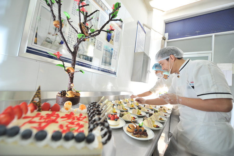 Cocineros de China Southern Airlines preparan sándwiches de mermelada de coco en Haikou, provincia de Hainan, el 22 de marzo de 2017. [Foto / VCG]
