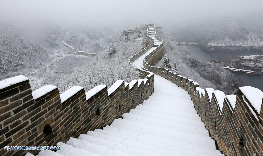 BEIJING, marzo 24, 2017 (Xinhua) -- Paisaje nevado de la sección de Huanghuacheng de la Gran Muralla, en el suburbano distrito de Huairou de Beijing, capital de China, el 24 de marzo de 2017. Una nevada cayó el viernes en el distrito. (Xinhua/Bu Xiangdong)