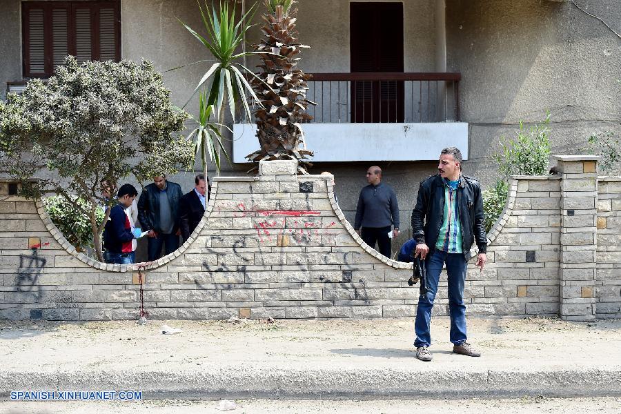 EL CAIRO, marzo 24, 2017 (Xinhua) -- Elementos de seguridad inspeccionan el sitio donde se registró una explosión en El Cairo, Egipto, el 24 de marzo de 2017. Una persona murió y cuatro resultaron heridas el viernes cuando un dispositivo explosivo hizo estallar en un jardín del distrito de Maadi, al sureste de la capital egipcia, El Cairo, según informó el diario oficial Al Ahram en su sitio web. (Xinhua/Zhao Dingzhe)