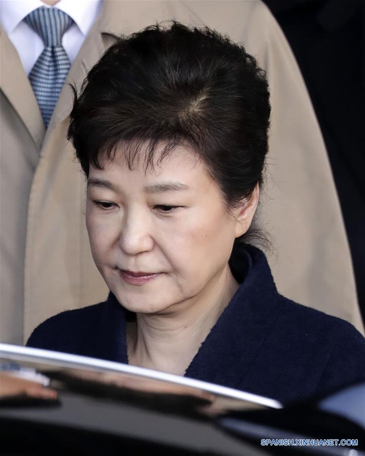 SEUL, 27 mar (Xinhua) --La expresidenta de Corea del Sur, Park Geun-hye, salió la oficina de los fiscales en Seúl, Corea del Sur, el 22 de marzo de 2017. (Xinhua/Lee Sang-ho)