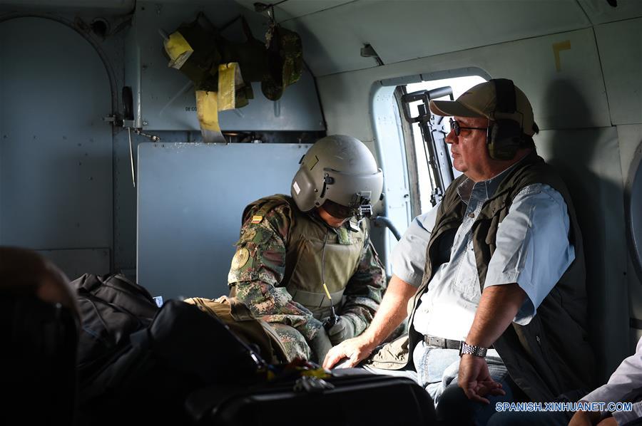 MOCOA, abril 5, 2017 (Xinhua) -- Imagen cedida por el Ministerio de Defensa (Mindefensa) de Colombia, del ministro de Defensa colombiano, Luis Carlos Villegas (d), trasladándose al albergue del Coliseo, en Mocoa, departamento de Putumayo, Colombia, el 5 de abril de 2017. La Organización Meteorológica Mundial (OMM) dijo el martes que lluvias muy intensas desencadenaron las avalanchas ocurridas el fin de semana en Colombia, pero que estos niveles "excepcionales" de lluvia no fueron la única causa y que muchos otros factores contribuyeron a la devastación. De acuerdo con una actualización de la Oficina de la Organización de las Naciones Unidas para la Coordinación de Asuntos Humanitarios, hasta el domingo se había confirmado la muerte de 254 personas en el desastre, 262 habían resultado heridas y 441 estaban desaparecidas. Se espera que estas cifras aumenten. (Xinhua/Mauricio Orjuela/Mindefensa)