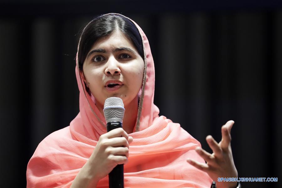 NUEVA YORK, abril 10, 2017 (Xinhua) -- Malala Yousafzai pronuncia un discurso luego de ser designada la Mensajera de la Paz más joven de la Organización de las Naciones Unidas (ONU) con especial atención a la educación de las ni?as, en la sede de la ONU, en Nueva York, Estados Unidos de América, el 10 de abril de 2017. El secretario general de la ONU, António Guterres, designó el lunes a Malala Yousafzai de Pakistán, de 19 a?os de edad, como la Mensajera de la Paz más joven de la ONU con especial atención a la educación de las ni?as. (Xinhua/Li Muzi)
