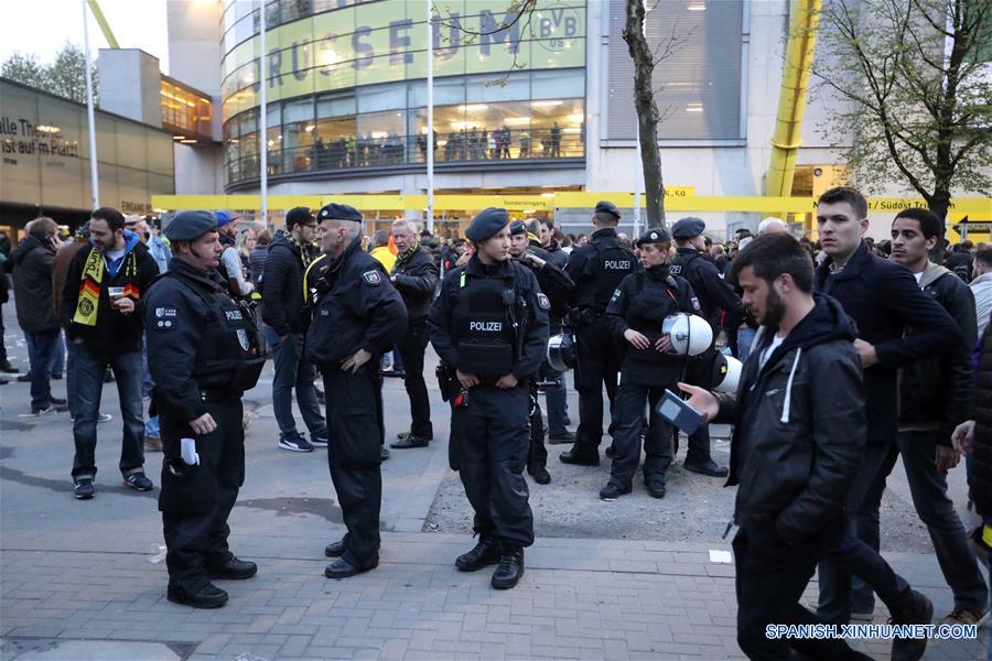 FRANKFURT, 11 abr (Xinhua) -- El equipo alemán de fútbol Borussia Dortmund indicó hoy que su partido de Liga de Campeones contra Mónaco fue cancelado luego de que ocurrieron tres explosiones cerca del autobús del equipo, la cual dejó un jugador herido.