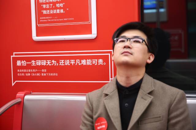 Una popular plataforma de compartición de música seleccionó de más de 5.000 comentarios que los oyentes dejaron después de escuchar una canción, y los publicó en las paredes del tren especial y las columnas de la estación Avenida Jiangling.