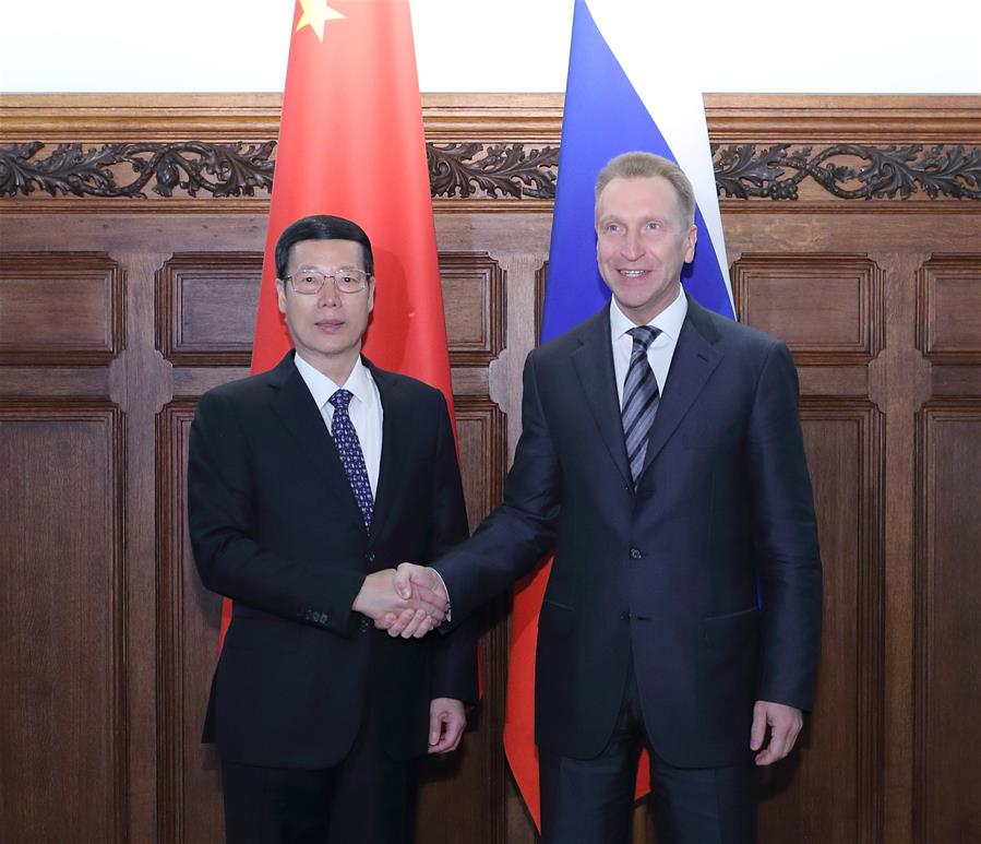 Zhang presentó tres propuestas para impulsar la cooperación en inversiones bilaterales. Pidió a ambos países crear sinergias entre la iniciativa china de la Franja y la Ruta y la Unión Económica Euroasiática de Rusia para aprovechar el papel de la cooperación en inversión en la integración de los intereses de las dos partes, la complementación de recursos, la creación de sinergias entre industrias y la realización de intercambios tecnológicos.