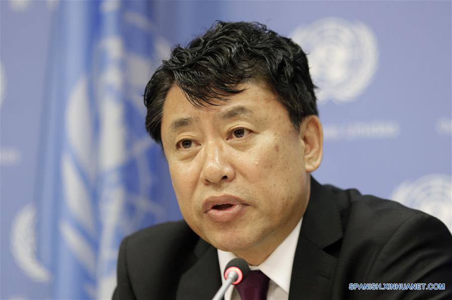 NUEVA YORK, abril 17, 2017 (Xinhua) -- El embajador de República Popular Democrática de Corea (RPDC) ante la Organización de las Naciones Unidas (ONU), Kim In Ryong, pronuncia un discurso durante una conferencia de prensa en la sede de la ONU, en Nueva York, Estados Unidos de América, el 17 de abril de 2017. (Xinhua/Li Muzi)