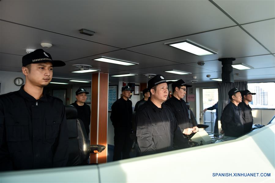 HAINAN, abril 17, 2017 (Xinhua) -- Miembros de la tripulación se preparan para una misión a bordo de un buque policial en Sanya, en la provincia de Hainan, en el sur de China, el 17 de abril de 2017. Dos buques de la policía marítima china salieron el lunes de Sanya para una inspección conjunta de las pesquerías entre China y Vietnam. La inspección, en el Golfo de Beibu, involucra a dos barcos de la policía de cada país, y se llevará a cabo durante tres días, terminando el jueves. Las inspecciones conjuntas comenzaron en 2006 como un evento anual, que aumentó a dos veces al a?o desde 2016. (Xinhua/Mao Siqian)
