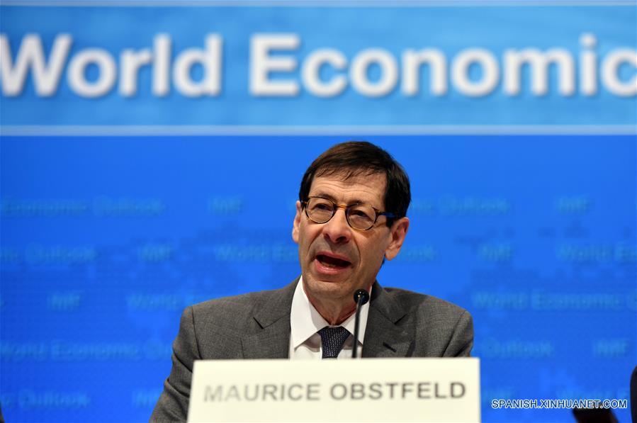 WASHINGTON D.C., abril 18, 2017 (Xinhua) -- El economista en jefe del Fondo Monetario Internacional (FMI), Maurice Obstfeld, asiste a una conferencia de prensa en la sede del FMI, en Washington D.C., Estados Unidos de América, el 18 de abril de 2017. El FMI incrementó el martes su pronóstico para el crecimiento económico mundial de 2017 gracias a los mercados financieros prometedores y a una recuperación cíclica largamente esperada en manufactura y comercio. (Xinhua/Yin Bogu)
