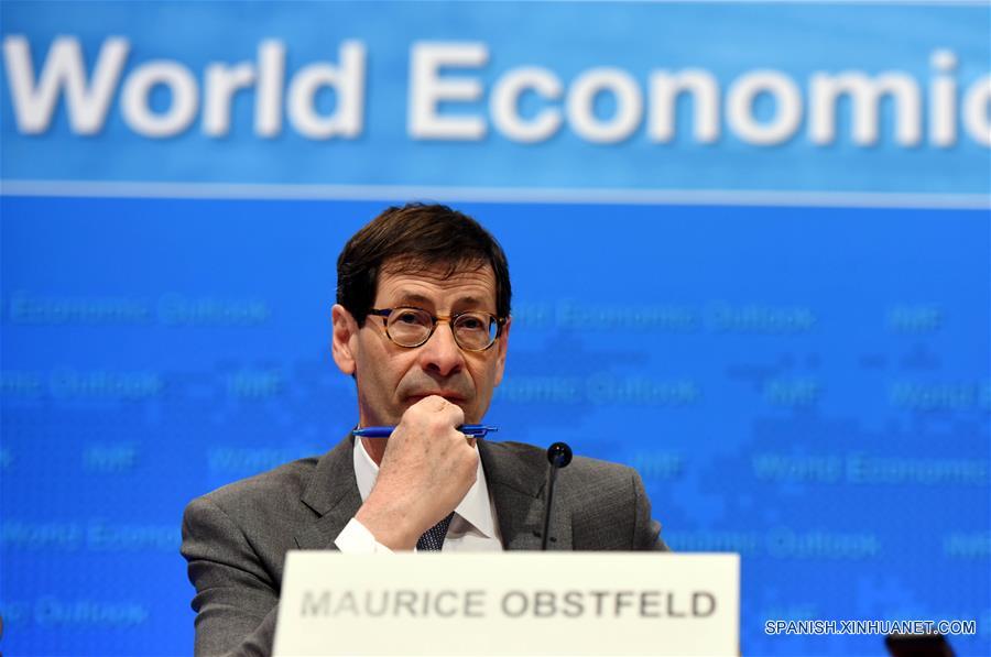 WASHINGTON D.C., abril 18, 2017 (Xinhua) -- El economista en jefe del Fondo Monetario Internacional (FMI), Maurice Obstfeld, asiste a una conferencia de prensa en la sede del FMI, en Washington D.C., Estados Unidos de América, el 18 de abril de 2017. El FMI incrementó el martes su pronóstico para el crecimiento económico mundial de 2017 gracias a los mercados financieros prometedores y a una recuperación cíclica largamente esperada en manufactura y comercio. (Xinhua/Yin Bogu)