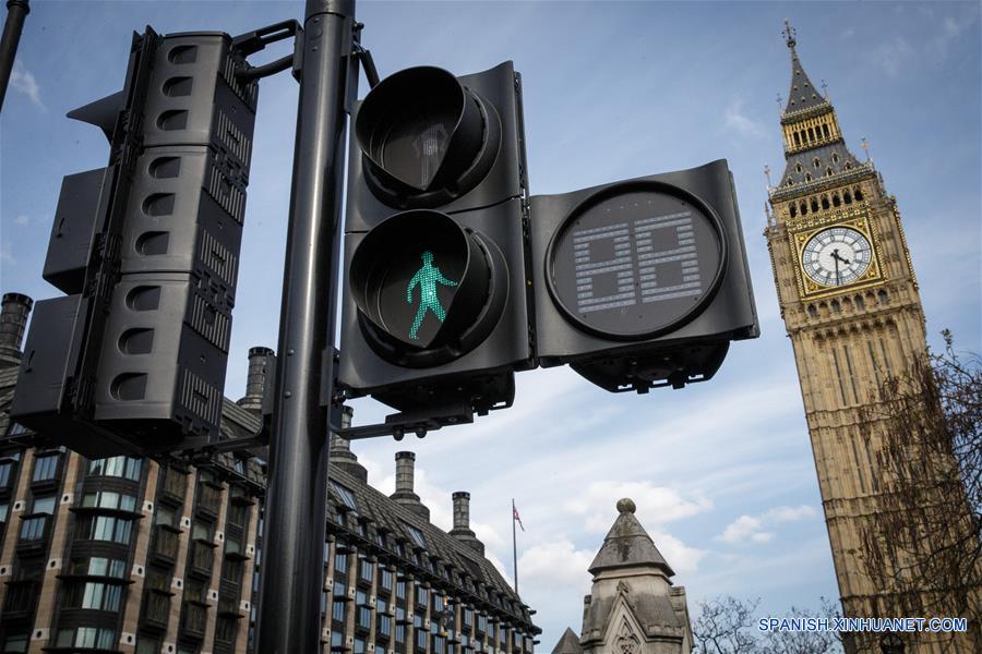 LONDRES, abril 19, 2017 (Xinhua) -- Vista del "Big Ben" y un semáforo para peatones, en Londres, Reino Unido, el 19 de abril de 2017. La Cámara de los Comunes británica aprobó el miércoles el llamado de la primera ministra Theresa May de que se lleve a cabo una elección general anticipada el 8 de junio. (Xinhua/Tim Ireland)