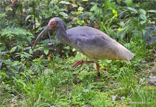 Un Ibis con Cresta en el centro de cría artifical de la Academia Provincial de Ciencias de los Recursos Naturales de Sichuan, situada en Emeishan. 18 de junio del 2017. (Foto: Liu Kun)