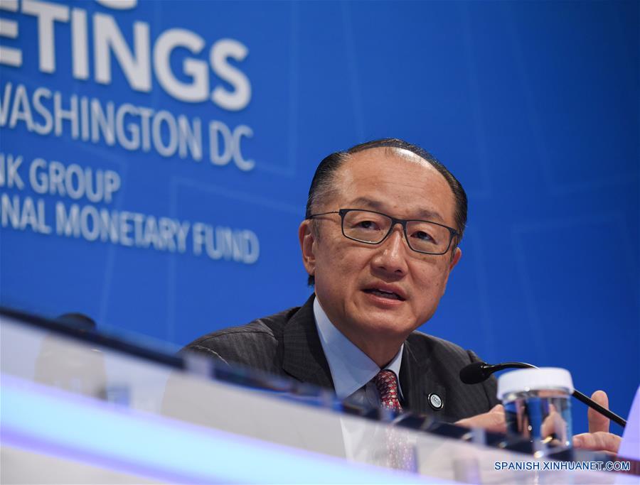 WASHINGTON D.C., abril 20, 2017 (Xinhua) -- El presidente del Banco Mundial, Jim Yong Kim, participa en la conferencia de prensa inaugural de las Reuniones de Primavera 2017 del Banco Mundial y el Fondo Monetario Internacional (FMI), en Washington D.C., capital de Estados Unidos de Améria, el 20 de abril de 2017. China sigue adoptando la apertura comercial y el país ha sacado de la pobreza a millones de personas a través de involucrarse cada vez más en comercio, dijo el jueves el presidente del Banco Mundial Jim Yong Kim. (Xinhua/Bao Dandan)
