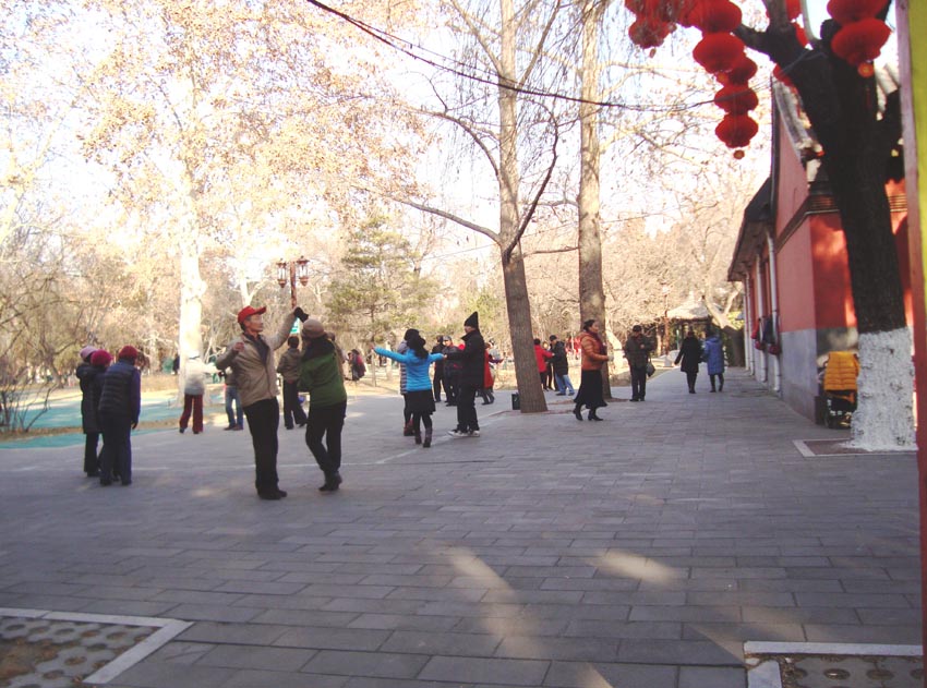 Bailar en la calle es una de esas actividades que tienen lugar por todo Beijing tanto por la ma?ana como por la noche. Aunque suele ser practicado por gente mayor, es una actividad gratuita que atrae a gente de todas las edades.