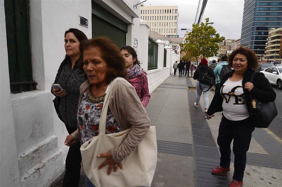 VALPARAISO, abril 24, 2017 (Xinhua) -- Personas reaccionan luego de un sismo en Valparaíso, Chile, el 24 de abril de 2017. El Servicio Hidrológico y Oceanográfico de la Armada de Chile (SHOA) descartó la posibilidad de un tsunami tras el sismo de 7.1 grados que se registró la tarde del lunes en la región de Valparaíso. (Xinhua/AGENCIAUNO)