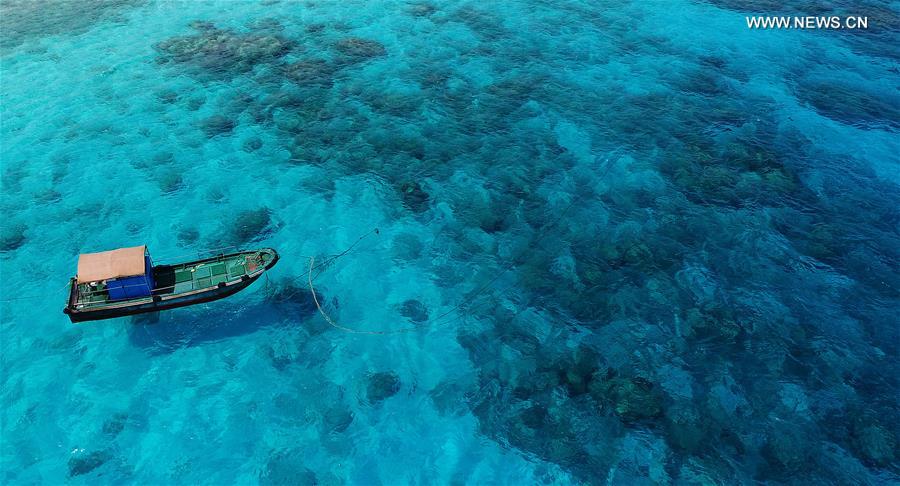 Imagen de un barco cerca de la isla Ganquan del archipiélago Xisha Yongle en la provincia de Hainan, sur de China, el 23 de abril de 2017. La ciudad de Sansha, en Yongxing, una de las islas Xisha, fue fundada en julio de 2012. La ciudad hace del turismo su principal motor económico y administra tres archipiélagos de islas - Xisha, Zhongsha y Nansha - junto con las aguas que las rodean. [Foto / Xinhua]