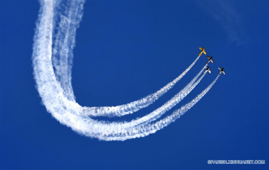 ZHENGZHOU, abril 30, 2017 (Xinhua) -- Aviones acrobáticos participan durante el "AirShow 2017" en Zhengzhou, capital de la provincia de Henan, en el centro de China, el 30 de abril de 2017. El AirShow de Zhengzhou se llevará a cabo hasta el 1 de mayo. (Xinhua/Zhu Xiang)