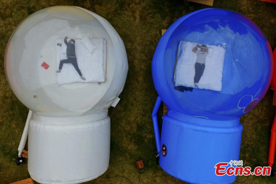 Habitaciones con forma de burbujas transparentes en el valle del río Meijiang en la provincia de Hunan, el 28 de abril de 2017. [Foto / Ecns.cn]