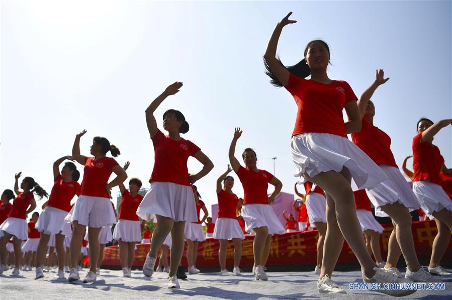 ANHUI, mayo 2, 2017 (Xinhua) -- Concursantes interpretan una danza cuadrada durante un torneo llevado a cabo en Bozhou, provincia de Anhui, en el este de China, el 2 de mayo de 2017. Más de 600 concursantes de 28 equipos de todo el país participaron en el torneo de danza cuadrada de dos días de duración que comenzó el martes. (Xinhua/Liu Qinli)