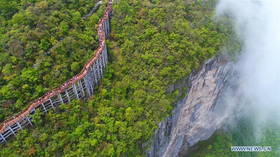 Hunan, 11/05/2017 (El Pueblo en Línea) - Paisaje del área turística Tianmenshan en Zhangjiajie, provincia de Hunan, 8 de mayo del 2017. (Foto: Wu Yongbin)