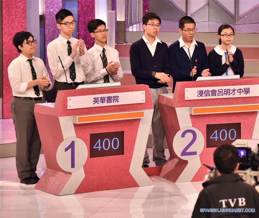 Estudiantes compiten durante el onceavo Concurso de Conocimientos Diplomáticos de la Copa de Hong Kong, en Hong Kong, en el sur de China, el 13 de mayo de 2017. El concurso de conocimiento concluyó el sábado, con la participación de más de 13,000 estudiantes de 96 escuelas. (Xinhua/Wang Xi)