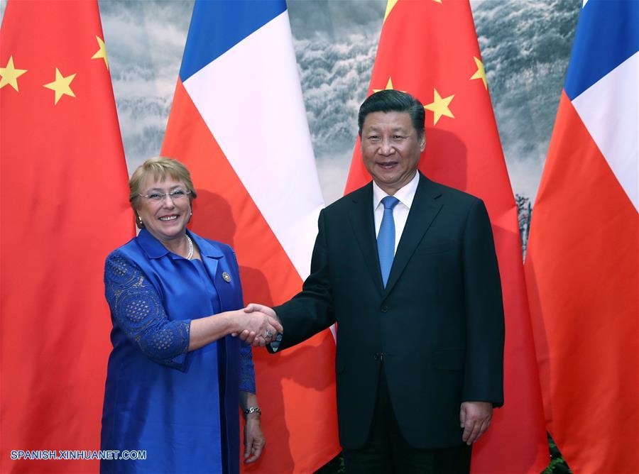 BEIJING, mayo 13, 2017 (Xinhua) -- El presidente de China, Xi Jinping (d), sostiene conversaciones con la presidenta de Chile, Michelle Bachelet, en el Gran Palacio del Pueblo en Beijing, capital de China, el 13 de mayo de 2017.(Xinhua/Ju Peng)