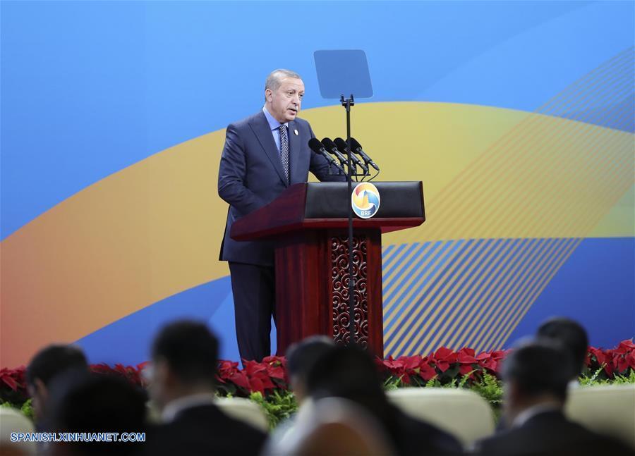 BEIJING, mayo 14, 2017 (Xinhua) -- El presidente de Turquía, Recep Tayyip Erdogan, pronuncia un discurso durante la ceremonia de inauguración del Foro de la Franja y la Ruta para la Cooperación Internacional en Beijing, capital de China, el 14 de mayo de 2017. (Xinhua/Pang Xinglei)