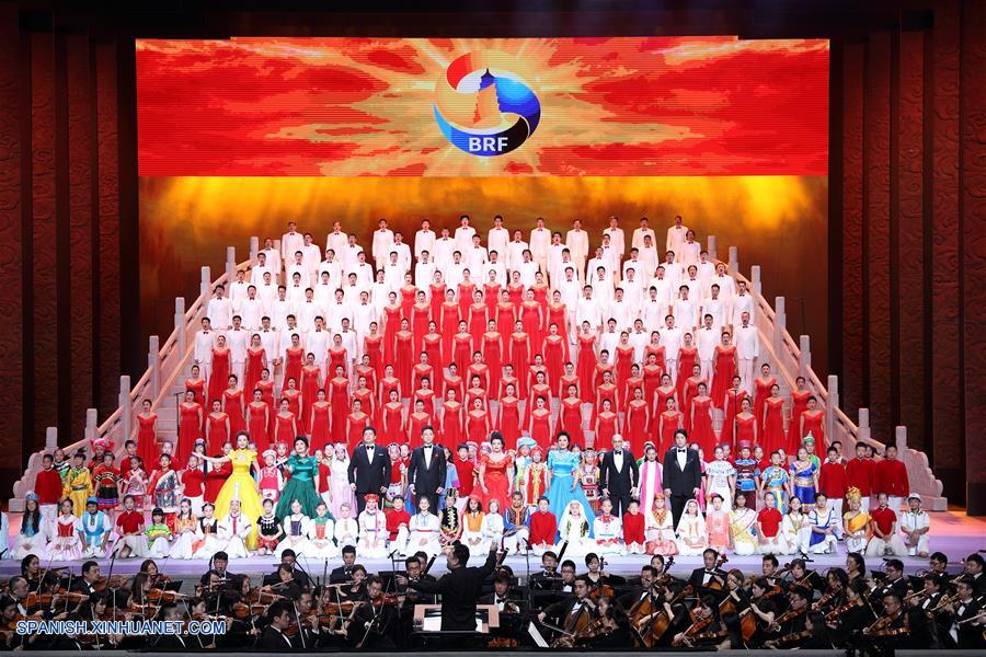 BEIJING, mayo 14, 2017 (Xinhua) -- Artistas cantan durante la "Ruta Milenaria", una puesta en escena para el Foro de la Franja y la Ruta para la Cooperación Internacional, en el Centro Nacional para las Artes Escénicas en Beijing, capital de China, el 14 de mayo de 2017. (Xinhua/Wang Ye)