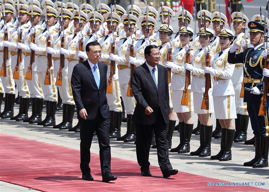 El primer ministro de China, Li Keqiang, y su homólogo de Camboya, Hun Sen, acordaron hoy que los dos países impulsarán su cooperación económica y trabajarán para asegurar la estabilidad y la prosperidad regionales.(Xinhua/Wang Ye)