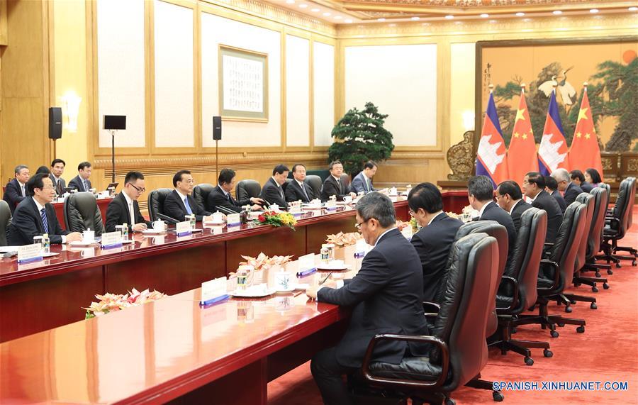 El primer ministro de China, Li Keqiang, y su homólogo de Camboya, Hun Sen, acordaron hoy que los dos países impulsarán su cooperación económica y trabajarán para asegurar la estabilidad y la prosperidad regionales.(Xinhua/Wang Ye)