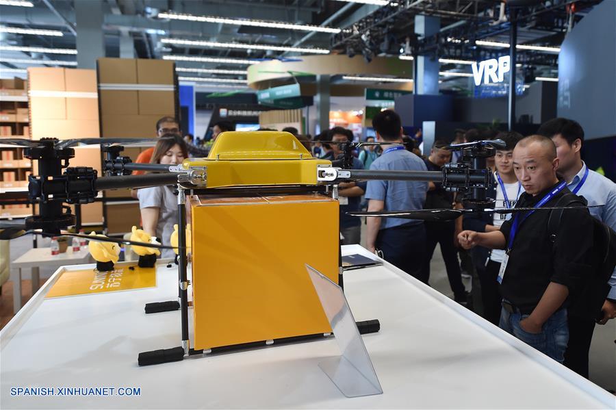 ZHEJIANG, mayo 22, 2017 (Xinhua) -- Personas visitan una exhibición durante la Cumbre Global de Logística Inteligente 2017 en Hangzhou, capital de la provincia de Zhejiang, en el este de China, el 22 de mayo de 2017. (Xinhua/Huang Zongzhi)