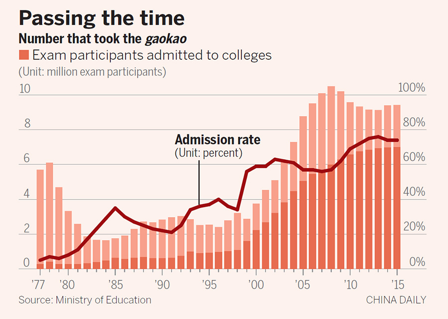 La tasa de admisión universitaria establecida no ha bajado de un 50 por ciento, aunque muchos critican que a los graduados se les difuculta conseguir un trabajo después de terminar la universidad. En 1999, la proporción era del 10,5 por ciento. El a?o pasado, cifro un 40 por ciento.