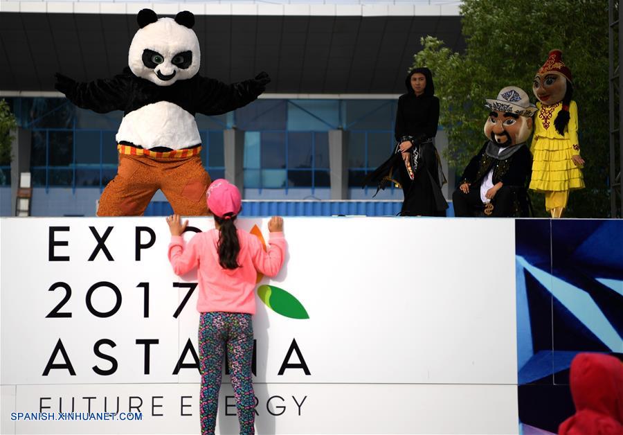 ASTANA, junio 6, 2017 (Xinhua) -- Una ni?a observa una presentación del grupo de danza Sam Ruk de la Universidad Euroasiática, en Astaná, Kazajistán, el 5 de junio de 2017. (Xinhua/Wu Xiaoling)