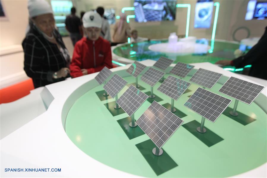 ASTANA, junio 10, 2017 (Xinhua) -- Personas visitan la sección de "Una Sabiduría y Práctica China" en el Pabellón de China de la Expo Mundial 2017 en Astaná, Kazajistán, el 10 de junio de 2017. El Pabellón de China de la Expo Mundial 2017 se inauguró el sábado en la capital kazaja de Astaná, que destaca los logros de China en el desarrollo, la utilización y la protección de nuevas energías. (Xinhua/Lu Jinbo)